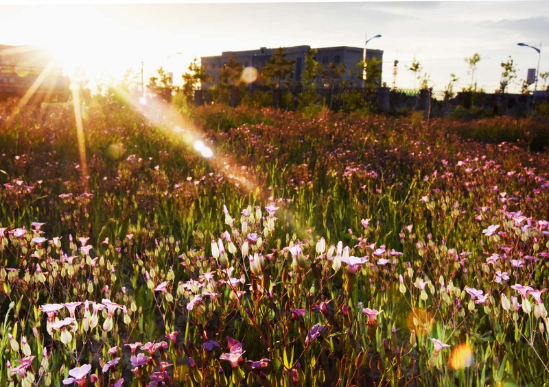 大门外左右延伸过去的那一排隔离绿网,就是大家经常去捡垃圾、拔草的那个位置,一丛又一丛低矮的粉牵牛在绿网脚下扎了根,一点一点地蔓延开来,你迎着夕阳去看它,在微风里娇娇软软的摇曳着,有些花朵还微微地收拢起来,这一定是个羞涩的小姑娘。