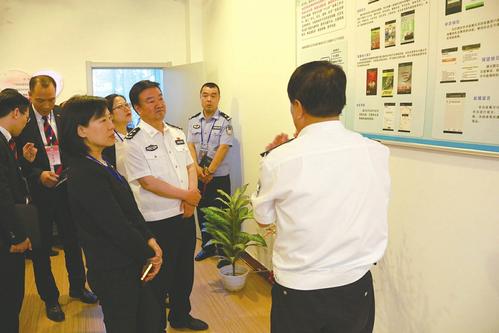 “戒毒工作中,将医疗救治、心理矫治、管理教育、后续照管等形成无缝对接非常重要,尤其是后续照管,这项工作是戒毒工作的社会延伸,我们一直着力将社区戒毒、社区康复与戒毒工作有效衔接,形成体系,力求帮助戒毒人员戒断毒瘾,走向社会,重新做人……”5月23日,以伍秀慧为团长的香港惩教署一行在新店戒毒所参访时,省司法厅党委委员、省戒毒局党委书记、局长白震的上述一番话得到参访团一行人的高度赞同。新店戒毒所所长陈廷刚从依法治所、以德养所的角度介绍了该所的情况,其中对戒毒人员进行体疗、心疗、文疗、情疗的人文化戒毒模式受到赞誉。参访团一行先后到戒毒人员就餐区、资料室、一大队宿舍、心理矫治中心、康复中心、会见室等地进行了参观。省戒毒局党委委员、副局长刘永星,省委政法委综合一处处长贺芳,以及省戒毒局相关处室负责人陪同参观。