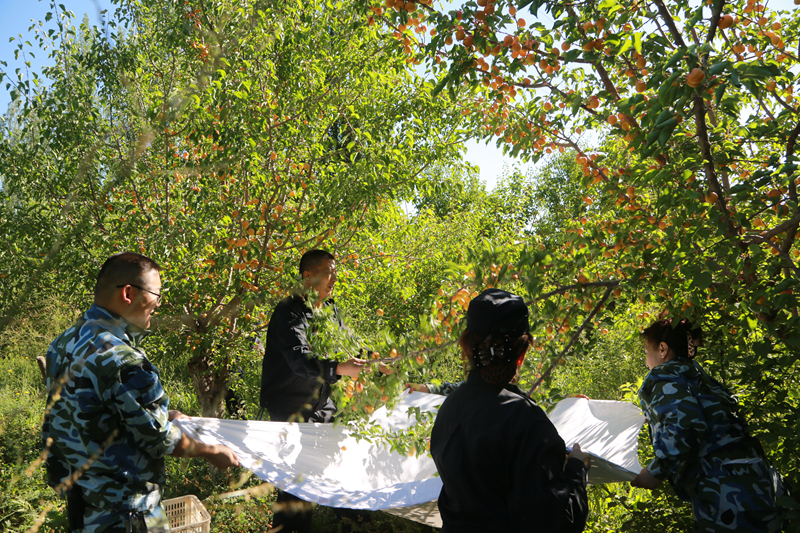 喀什局的杏园到处可见金黄诱人的杏儿挂满枝头 利用党团活动日和每周劳动日,民警们欢天喜地的边采摘,边品尝皮薄酸甜口感极佳的杏儿。 杏园里热闹非凡,民警们笑着说着,轻摘轻放树上的好果子,也舍不得被风吹落在树下的,尽收筐中。 看啊,丰收的果实一部分分到民警手中,一部分分至各管教大队让戒毒人员品尝。 投稿单位:新疆喀什教育矫治局(戒毒所) 投稿人:毛红梅 联系人:毛红梅 联系方式:15276016868 QQ:2632740940 邮箱为QQ邮箱