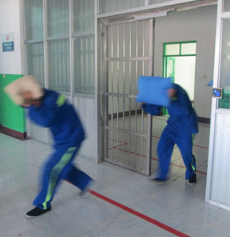近日,喀什教育矫治局(强制隔离戒毒所)基层大队根据“五防”要求,认真组织民警、管理对象开展防地震预案演练。