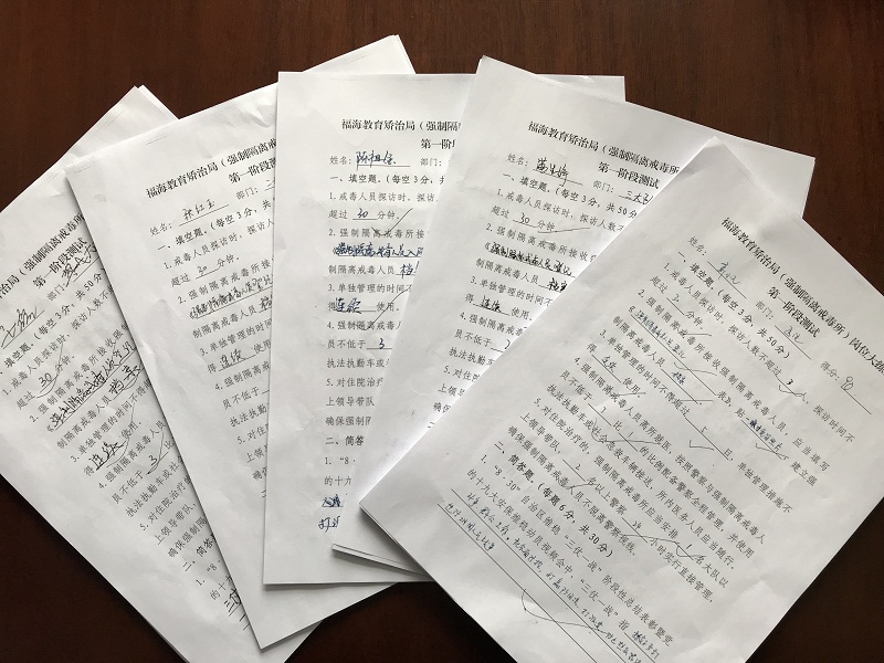 此次理论测试由局(所)党委统一出题,对照《岗位大练兵日程安排表》学习内容,从《司法行政戒毒工作基本规范》、场所安全管理工作及陈全国书记重要讲话精神中抽取产生,采取闭卷笔试的形式进行。各部门负责人以上率下,带头参加考试。考试结束后,该局(所)政工部门立即组织联合改卷组对试卷进行批改,据统计,局(所)共有62名民警职工参加了本次测试,优秀率达91%。因工作原因未能参加此次考试的人员,将于10月22日组织补考。
