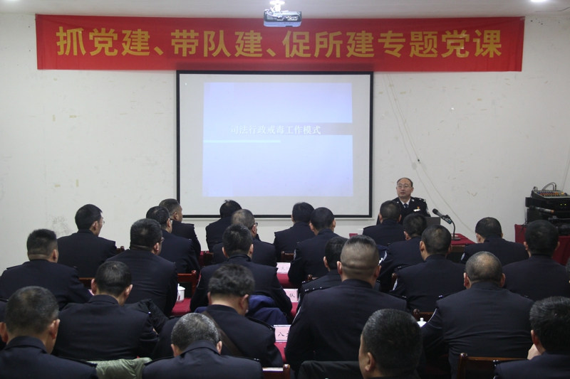 上专题党课:在参观红岩魂陈列馆后,罗繁荣所长结合“坚定信仰、信念、信心”专题学习教育活动,以“抓党建、带队建、促规范”为题给全体民警讲了一堂专题党课。他从自身参加全国司法行政戒毒所长培训学习感悟,深入解读共产党员信仰、信念、信心的精神实质,并联系场所工作实际提出要求。他指出,在新的一年工作中,全所民警职工要全面贯彻落实好习近平总书记全面依法治国新理念新思想新战略和上级各项决策部署,以坚定信仰、信念、信心为目标,坚持政治引领、党建先行,队建保障,切实增强党性观念和党员意识,牢记初心使命,聚焦推进全国统一的司法行政戒毒工作基本模式和场所规范化建设工作要求,坚持问题导向,强化正面引导,提高站位、提升境界、提振士气,打造忠诚干净担当的高素质司法行政戒毒民警队伍,为场所科学发展提供强有力的组织保证,以优异成绩向新中国成立70周年献礼。