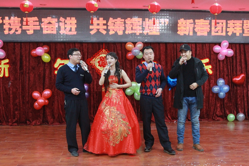 联欢活动期间,活动室内张灯结彩,到处都洋溢着喜庆的氛围。联欢会在激情澎湃的开场舞蹈《恭喜发财》中拉开帷幕,女警花们青春洋溢的表演表达了对新年的美好祝愿;诗朗诵《我们无悔这一行》诉说了工作在司法战线上人民警察高贵的品格和无悔的精神,《读中国》诠释了上下五千年的中华历史文化,赞颂了伟大祖国,才艺表演《渔舟唱晚》体现了有声与无声相伴,古筝与书法并行的优美意境;歌伴舞《古丽》展现了大美新疆,维吾尔民族的能歌善舞;小品《人民警察不容易》是工作在一线民警的生活写照;小合唱《相信自己》激励了广大民警职工努力拼搏的工作作风;《大双簧》的演员们更是用充满激情的表演博得了观众们的阵阵掌声;《海草舞》展现了女民警们吃苦奉献不输男儿,柔情似水、生如夏花的一面;《相亲相爱一家人》更是体现了有心有爱才是家;三句半《串聊送春禧》、舞蹈《民族风》等节目精彩纷呈,最后联欢会在大合唱《援疆之歌》中完美结束。