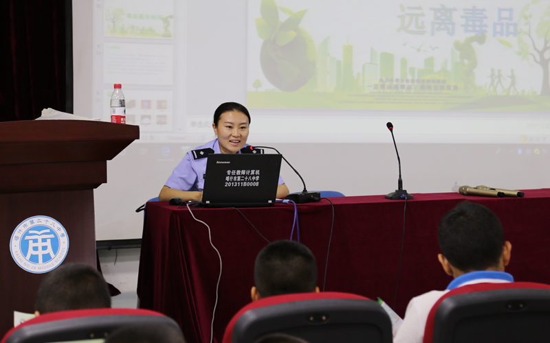 6月17日,喀什强制隔离戒毒所民警到喀什市第二十八中学开展禁毒教育宣传,通过开展毒品预防教育讲座、发放禁毒宣传单、学生参观禁毒宣传展示板等活动,让毒品预防教育走进校园。