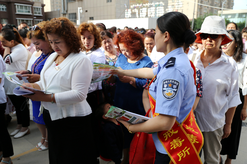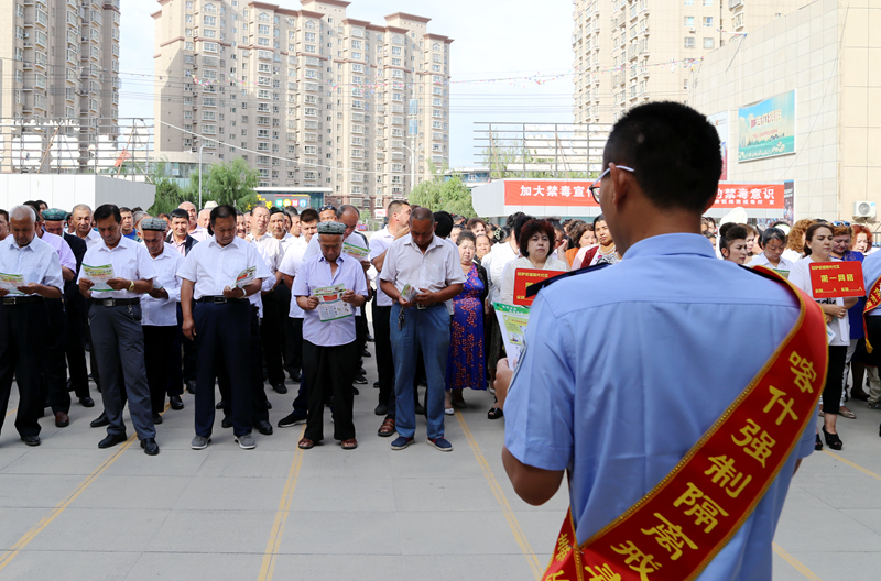 为进一步增强全民禁毒意识,普及毒品知识、传播禁毒理念、宣传禁毒政策、营造全民参加禁毒的氛围。6月17日,喀什强制隔离戒毒所在喀什市阳光小区开展“加大禁毒宣传力度 提高全民禁毒意识”为主题的禁毒宣传活动,呼吁广大民众增强防范意识,自觉拒绝毒品。