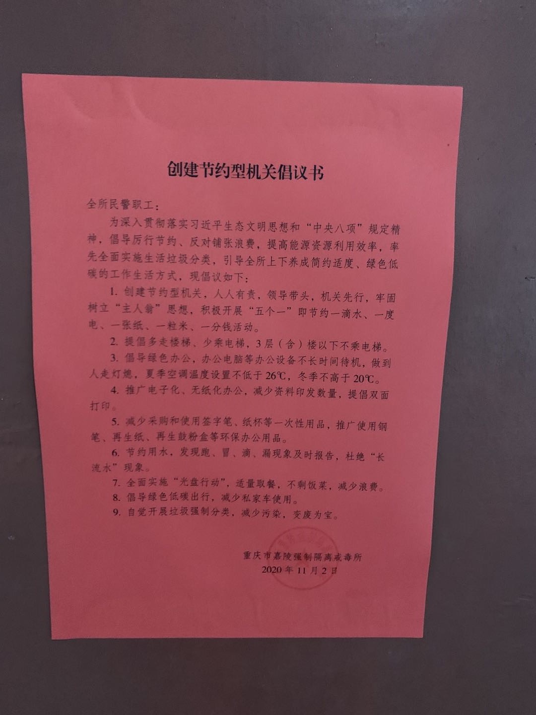 近日,为贯彻落实习近平生态文明思想和党的十九届五中全会精神,推进场所节约型机关创建工作,嘉陵所组织开展了“节能减耗,绿色办公”主题活动。
