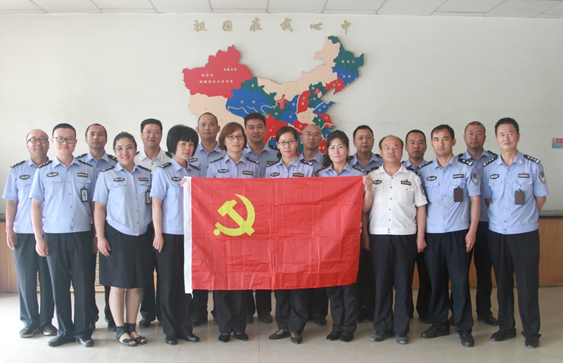 一个支部一座堡垒,一名党员一面旗帜。6月14日,阿克苏教育矫治局(强制隔离戒毒所)各党支部开展佩戴党徽与党旗合影活动,展现党员风采,深化党员身份意识,增强爱党、爱国热情,庆祝中国共产党成立96周年,同心献礼党的十九大。