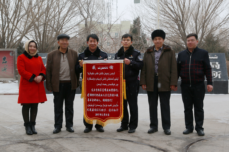 2017年2月6日,是艾某解除强制隔离戒毒回归社会的日子,肉某及家人来到喀什教育矫治局(戒毒所)接孩子回家,为表达全家人对管教民警的感谢之情,特意为管教民警送上了一个大“红包”——锦旗。