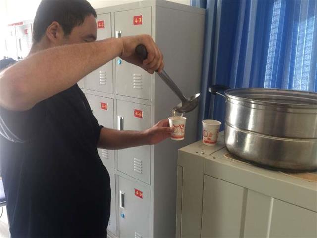严把采购,改善饮食。对食堂一日一消毒,严把蔬菜、豆制品、肉类等食品采购关,杜绝霉烂食物进入食堂,严格落实食品留样制度,切实做到生食与熟食分开,有效预防食物中毒事件发生。充分征求民警职工意见,合理调整伙食结构,增加冰镇绿豆汤和冰镇西瓜。科室、局(所)领导层层把关,科学制定周食谱,增加了绿豆汤、凉面、凉粉、米饭、包子、凉拌菜等清凉食品,确保戒毒人员吃的可口、吃的放心。在此基础上,为戒毒人员分期分批购置白糖、茶叶和西瓜等降温用品,最大限度满足防暑降温所需。同时,在周二接见日为戒毒人员家属提供免费绿豆汤和藿香正气水等物品。