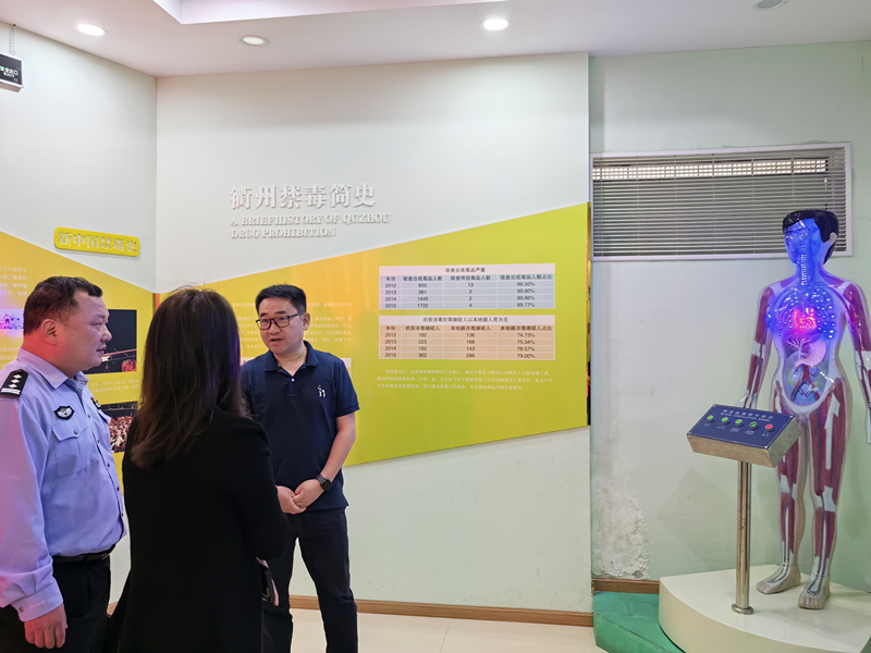 其间,调研组一行深入衢州市中小学素质教育实践学校、航埠镇初级中学、航埠镇戒毒康复指导站、浙江省易制毒化学品管理宣传教育馆等地,以座谈交流、问卷调查、重点管控人员实地走访等方式,深入了解区域内禁毒宣教、社区戒毒(康复)人员管理、新精神物质管控等情况,并就“两端智控”戒毒康复指导站建设、戒毒工作“两端延伸”合作等事项进行了探讨。