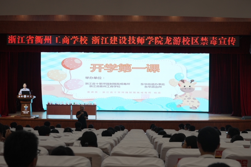 9月7日下午,我所联合东华街道办事处走进浙江省衢州工商学校,为该校“3+2”合作班共计500名高一学生送上禁毒专题“开学第一课”,帮助学生在人生新阶段筑牢绿色生活防火墙。