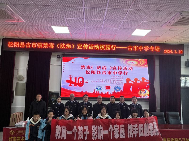 2024年1月10日,第四个中国人民警察节。我所发挥所地共建的优势,抢抓机遇,警警联动,以松阳县古市镇社区戒毒(康复)指导站为依托,联合松阳县公安局、松阳县司法局、古市镇人民政府等单位,深入古市镇社区、企业、校园等地开展禁毒法治宣传活动,营造全民禁毒的良好氛围,共庆中国人民警察节。