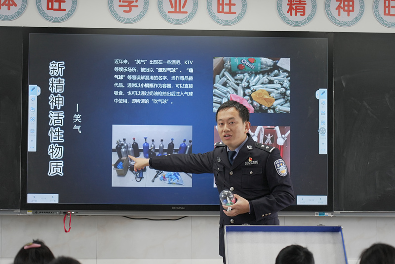 “一堂阳光禁毒课”,我所“蒲公英”禁毒法治宣讲团民警结合省局禁毒宣传统编课件,以“图文讲解+视频展播”相结合的形式帮助学生掌握识毒、辨毒、拒毒知识。