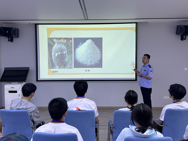 宣讲民警围绕“防范涉麻精药品等成瘾性物质滥用”主题,从毒品的定义分类、常见种类、作用特性,以及极具诱惑欺骗的伪装毒品进行了深入的讲解,并以“视频展映+数据呈现”的形式,直观展示毒品的现实危害性,涉毒违法犯罪的种类以及相应的法律后果。
