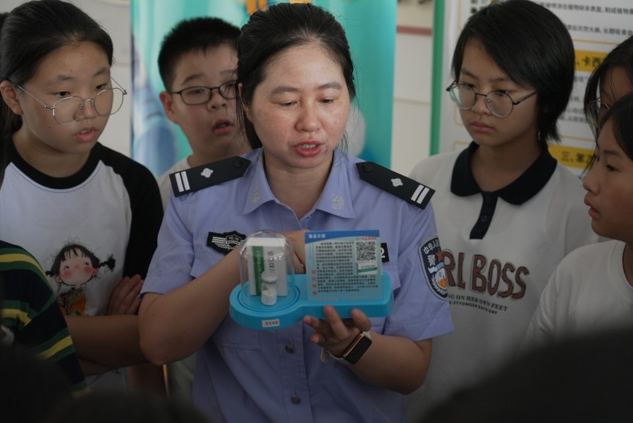 民警通过分发禁毒宣传手册、现场展示毒品模型、分享真实案例等方式,向同学们重点介绍了近年来在青少年群体中逐渐蔓延的“笑气”问题。这堂“开学第一课”,增强了小学生的毒品预防意识,让师生们深刻认识到构建安全、健康的校园环境的重要性,激发了大家参与禁毒斗争的热情和“不让毒品进校园”决心。