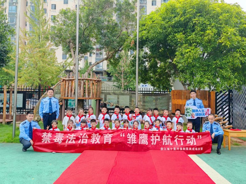 值此75周年国庆佳节来临之际,我所五大队积极响应“蔚蓝警营法护雏鹰”研学主题活动号召,赴龙游蓝天幼儿园举办以“童心向国旗,共筑无毒梦”为主题的升旗仪式及禁毒宣传教育活动。